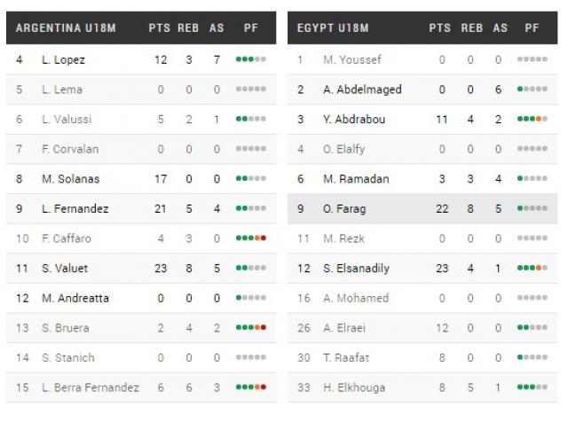 Acá es donde ganar deja una sensación amarga. El pivot egipcio (Algo gordito y de menos de 2 metros) se hizo un picnic con todos los pivots argentinos, practicamente los sacó a todos por faltas (3 se fueron por 5), a pesar de que el equipo jugó muchos minutos con 4 perimetrales. Patoruzú Vaulet como siempre, posiblemente termine como goleador del torneo (19 ppp), además de ser el segundo en valoración (16,7), el mayor rebotero del equipo (5,8), segundo del torneo en robos (2,3) y en tapas y asistencias figura entre los mejores 15 del certamen.